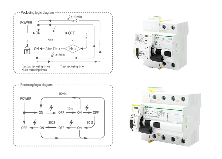 • 多次跳闸或检测到持续故障时自动锁定,防止重复重合闸。